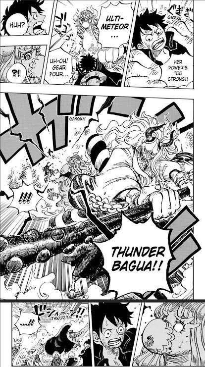 Bu kral haki olmasa bile bayağı güçlü bir haki, cılız bir yıldırım da çıkmıyor bayağı Kaido’nun Luffy’e attığı tek gibi çizmiş. Kral haki var olmasa bile Zoro’nun o saldırıyla bitirmeye çalıştığı bariz bence.Kaido üzerinden bir yorumlama yapalım.