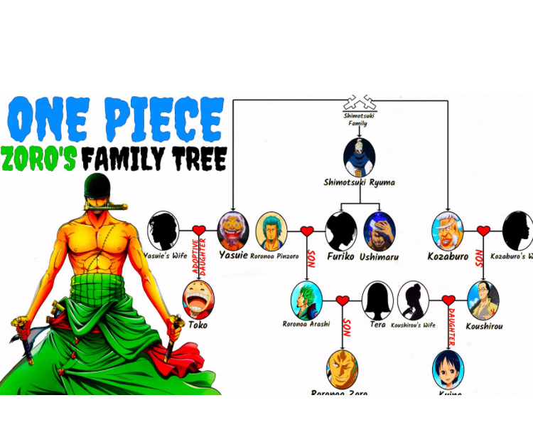 Babaannesi Ryuma'nın direk soyundan. Yani Zoro'nun Babasının annesi direk Ryuma soyundan. Bu Wano'da gördüğümüz Zoro'ya benzeyen adam Zoro'nun Babasının Dayısı yani.:D