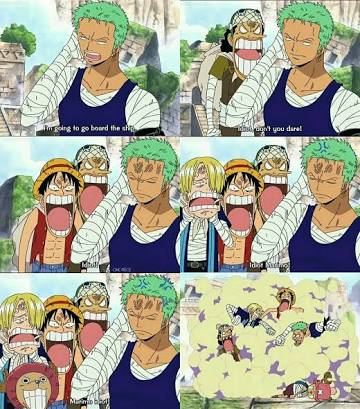 @Mike şuraya bi ekleme yapayım.Bak görüyor musun sanji ve zoro yenişemediği için sanji chopper'i tutuyor zoro'yu dövmesi için.