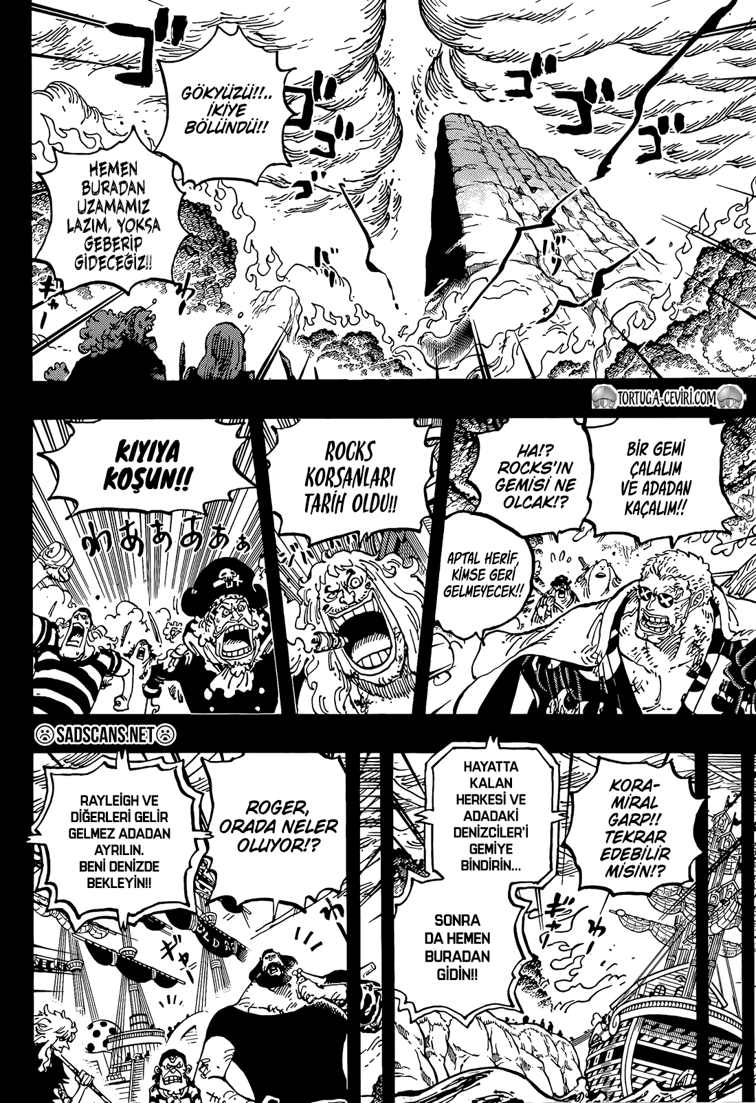 Tek yarıyor yalnız. Roger ile Garp'ı fırlattığı saldırıyla birlikte yarılıyor gök. Garp ile Roger'la ortak yarsalardı. Garp yumruğu atarken,Roger'da kılıcıyla durdurken yarılırdı gök. Gene yanlışsın anlayacağın.