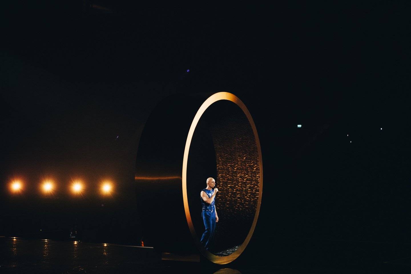 Set, göksel bir kubbeden inerek tavan oluşturmak üzere orta kare altına yerleştirilmiş durumda, ancak orta sekizdeyken tüm set tekerlekler üzerinde uzaklaştırılıyor ve sahnenin ortasında sadece Isaak kalıyor. Bu arada kendisi de siyah bir takım elbise giymiş ve dört vokalistle çevrelenmiş. Hikâyesi olan performans var.