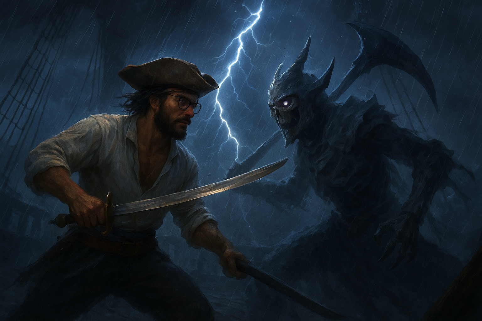 Kaptan ağır bir hayalet baltası kaldırdı. Ben de kılıcımı iki elimle kavradım. Fırtına, deniz, gök… hepsi arka plana kaydı.