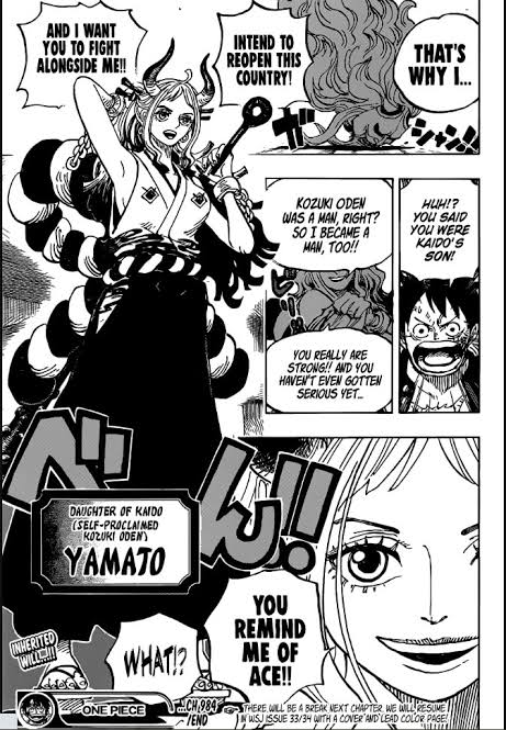 Ayrıca kaido’ya kendi ağzıyla “seni yenemeyeceğimi biliyorum ama luffy yenecek. O gelene kadar ben seni oyalayacağım” diyor. Bu kız luffy’nin saldırılara kral haki ekleyebildiğini görmeden söyledi bunu.